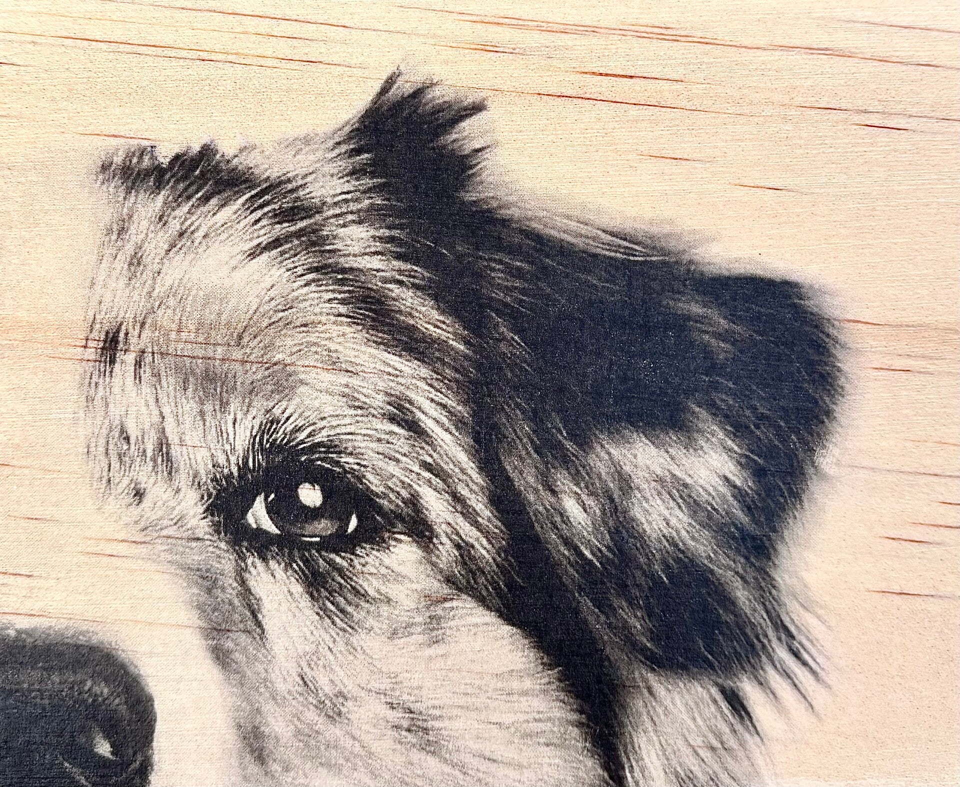 Ce moment où l’on enlève le papier est toujours une surprise : l’image ne se pose pas sur le bois, elle s’y révèle; ce qui rend chaque pièce unique.